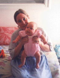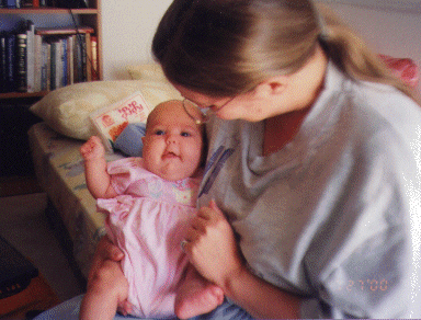 | "Look, Ima! I can stand up!" | "Hey, here comes Mommy with that flashy-thing again." |
