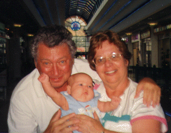| "Hooray!" Tova spending a blistering hot day in the air conditioned mall with Grandma and Gramps. |